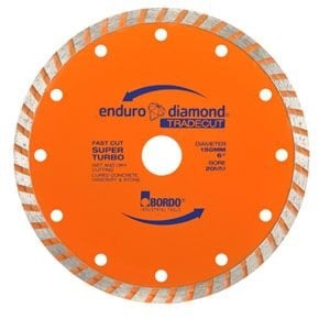 Turbo blades typically have soft to medium bonds for a variety of general purpose to specific cutting applications. Turbo blades feature a continuous rim with an edge that is serrated. This serrated edge is designed to give the blade faster cutting speeds while maintaining a smooth cut, combining the best qualities from both segmented and continuous rim blades.