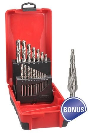 Category: Bordo, Drills, Jobber, Delta Point Bright Finish HSS, Metric Sets BONUS Step Drill