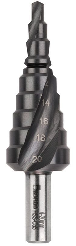 Bordo 4-20 x 2mm Spiral Flute HSS Cobalt TiAlN Coated Step Drill