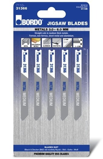 Category: Bordo, Saw Blades, Jig Saw Blades, Universal Shank Metal, Universal Shank Metal – 5 Packs