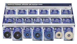 Bordo Flap, Clean & Strip and Wool Felt Buffing Disc – 3 Tier Merchandiser