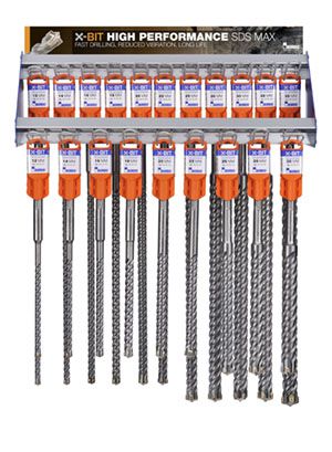 Bordo X-BIT SDS Max TCT Masonry Drill – Hangsell – 2 Tier Merchandiser