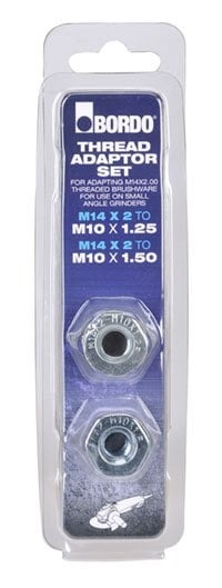 For adapting M14x2.00 threaded brushware to M10x1.25 or M10x1.5 threaded spindles on small angle grinders.