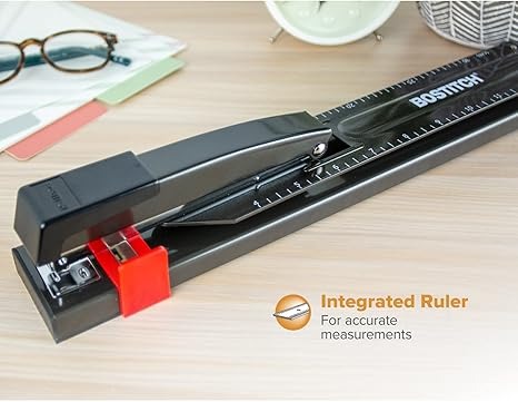 Have you ever needed to staple a booklet or an area of a document other than the corners but the stapler did not seem to reach? Problem solved! This long reach stapler has the unique capability to reach an expansive 12 inches. The extra long arm of the stapler allows for easy centerline stapling. Use this feature for making booklets, programs, and flyers with ease. Each unit features an adjustable paper guide with both standard and metrics measurements. Use the guide to determine where in your document you’d like to place your staple, whether it’s 12″ or 6″, and measure to that place every time. An all-metal construction allows you to staple up to 20 sheets of paper at once. Each long reach stapler also features No-Jam technology to eliminate frustrating staple jams. The non-skid rubber feet keep the stapler in place during frequent use. For added convenience, each long arm stapler features versatile dual clinch stapling plate. Choose between permanent or temporary stapling with ease. Turn yourself into a booklet-making pro with this specialty stapler!