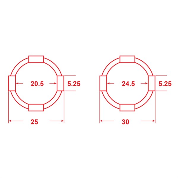 Size 2: 24.5mm I.D. x 4 point (5.25mm)