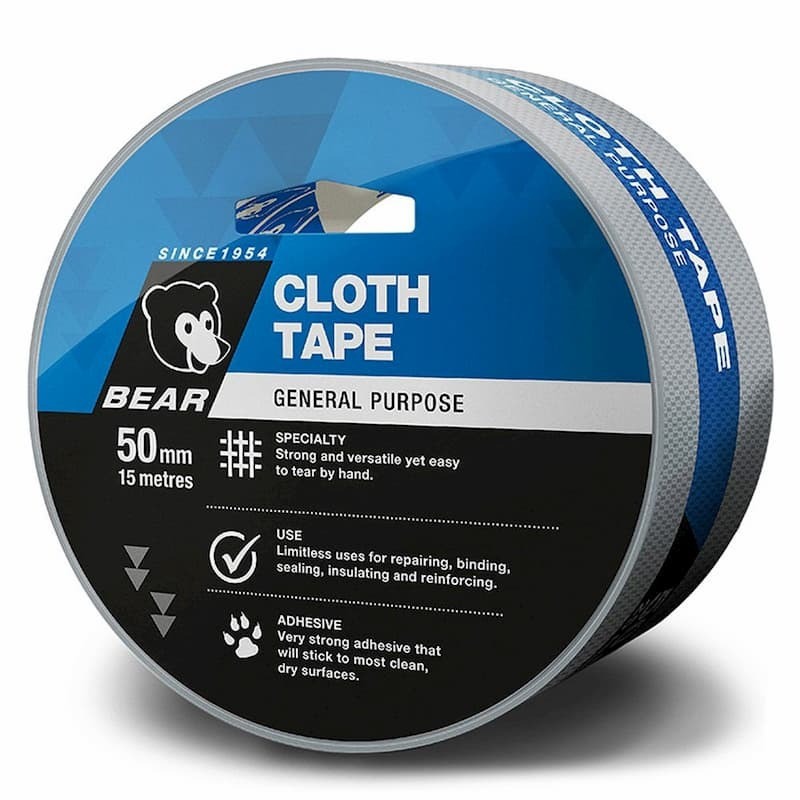 Home » Shop » CUTTING TOOLS (HSS & Carbide) » ABRASIVES » BEAR CLOTH TAPE - 15M » CLOTH TAPE 50mm x 15M – SILVER BEAR