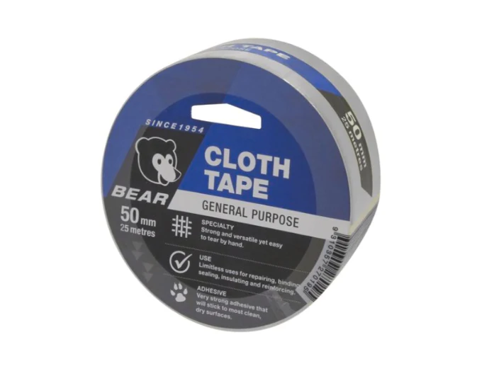 Home » Shop » CUTTING TOOLS (HSS & Carbide) » ABRASIVES » BEAR CLOTH TAPE - 25M » CLOTH TAPE 50mm x 25M – SILVER BEAR