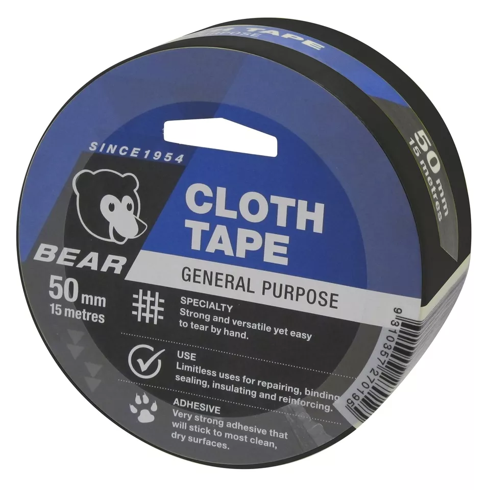 Home » Shop » CUTTING TOOLS (HSS & Carbide) » ABRASIVES » BEAR CLOTH TAPE - 4.5M » CLOTH TAPE 50mm x 4.5M – BLACK BEAR