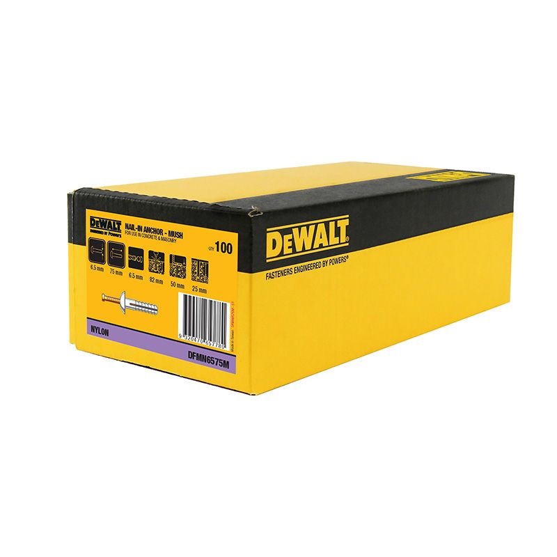 DEWALT – ANCHOR ,NAILIN MUSH HD, NYLON YEL ZINC, 6.5 x 75mm [100]