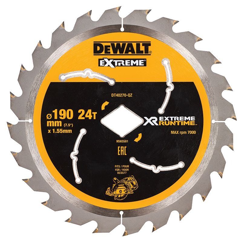 Optimised for use with the DCS577N-XJ DEWALT XR FLEXVOLT Rear Handle Circular Saw. Delivering maximum productivity from the power available. Engineered for first and second fix applications and suitable for cutting hardwood, wood, plywood, MDF and chipboard.