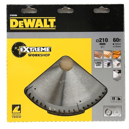 DEWALT – SAW BLADE, EXTREME WORKSHOP TCG 210mm x 60T (16/25/30mm)