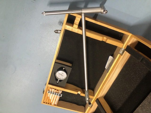 The measurement is taken by 2 hardened steel anvils (1 fixed, 1 movable) which are automatically centred in the bore by a separate spring loaded guide.