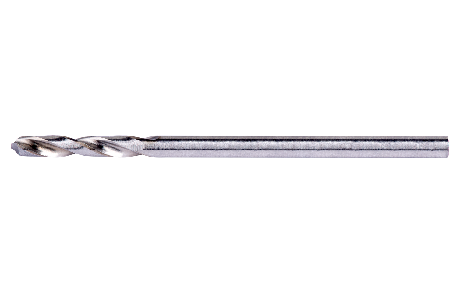 Stub length drill with straight shank, diameter 0.0313″ (1/32) with an overall length of 35mm and flute length of 13mm according to DIN/ANSI standard with 135° conical point, HSS with bright finish for 2.5xD drilling without pecking in steel and cast iron