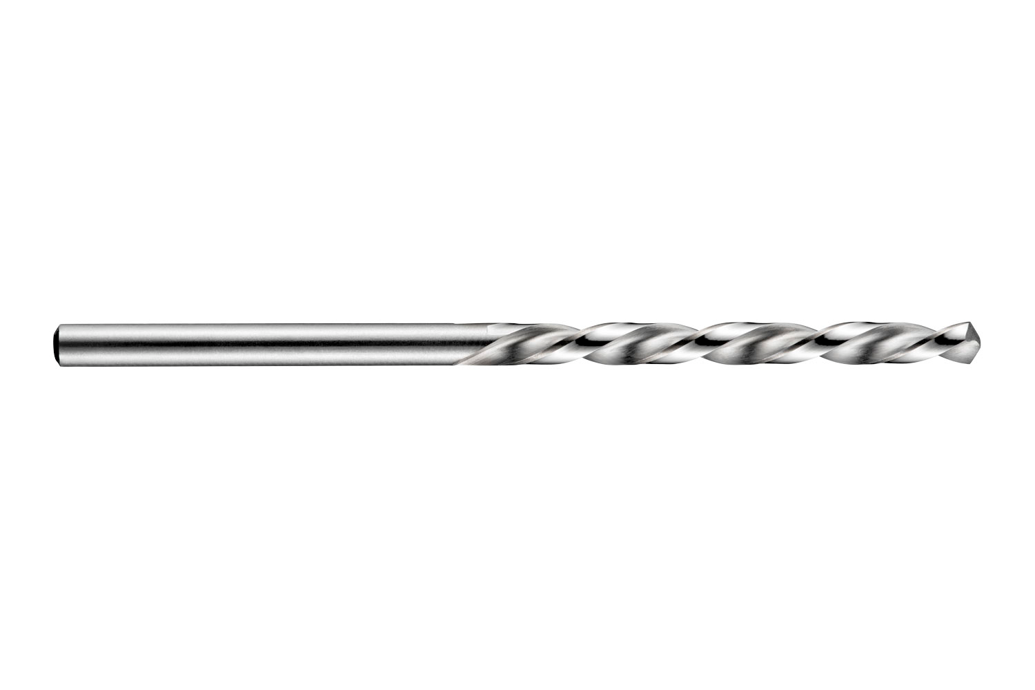 Jobber length left hand drill with straight shank, diameter 1.9mm with an overall length of 46mm and flute length of 22mm according to DIN 338 standard with 118° point angle, HSS with bright finish for 4xD drilling without pecking in steel