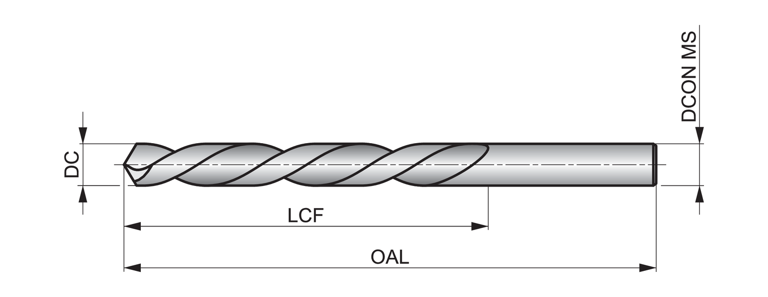 Jobber length left hand drill with straight shank, diameter 3.8mm with an overall length of 75mm and flute length of 43mm according to DIN 338 standard with 118° point angle, HSS with steam tempered finish for 4xD drilling without pecking in steel
