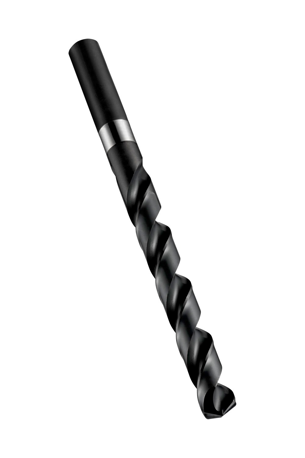 Jobber length drill with straight shank, diameter 9mm with an overall length of 125mm and flute length of 81mm according to DIN 338 standard with 135° split point, HSS with steam tempered finish and quick spiral for 4xD drilling without pecking in stainless steel