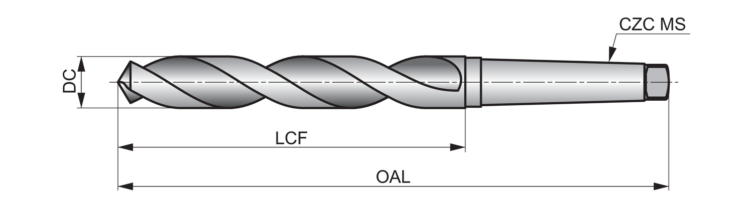 Product name: A13334.5 Cutting diameter – millimeter (DC): 34.5 mm Cutting diameter – inch (DC): 1.358 inch Length chip flute – millimeter (LCF): 190 mm Overall length – millimeter (OAL): 339 mm Connection size code machine side (CZC MS): MT 4