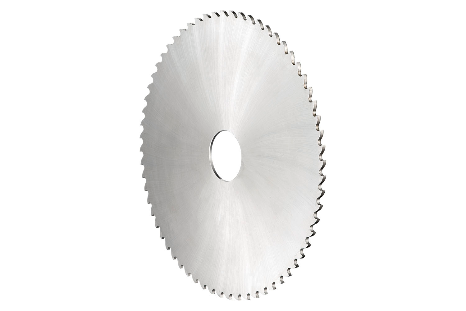 Metal slitting saw with coarse pitch and 64 teeth, diameter 125mm with 2mm width of cut, according to DIN 1838 standard with a 22mm bore, HSS with bright finish, and 15° rake angle for cut-of sawing, shallow slotting and deep slotting in steel and cast steel, cast-iron and non-ferrous metals