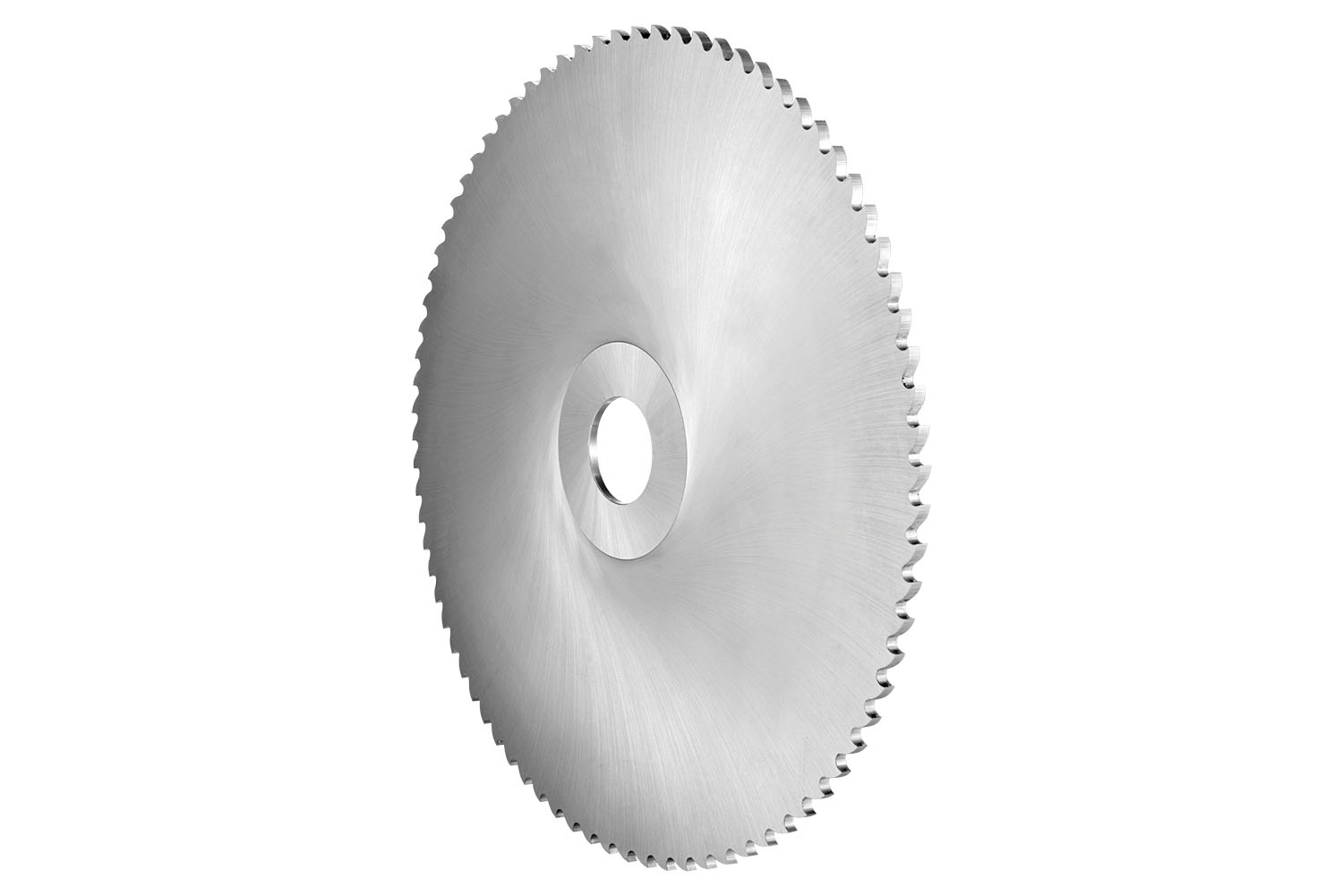 Metal slitting saw with coarse pitch and 100 teeth, diameter 250mm with 2mm width of cut, according to DIN 1838 standard with a 32mm bore, HSS with bright finish, and 15° rake angle for cut-of sawing, shallow slotting and deep slotting in steel and cast steel, cast-iron and non-ferrous metals