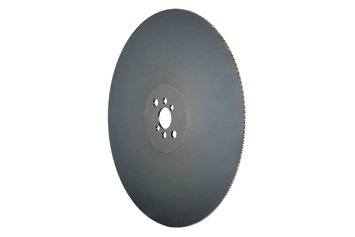 Metal slitting saw with coarse pitch and 350 teeth, diameter 350mm with 2.5mm width of cut, according to DORMER standard with a 32mm bore and standard driving pin holes, HSS with steam tempered finish, and 18° rake angle for cut-of sawing, tube sawing and shallow slotting in steel and cast steel, cast-iron and non-ferrous metals