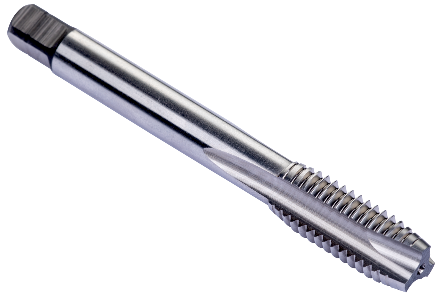 Spiral Point Power Tool Tap with chamfer form B with a 3.5-5xP plug lead, for ISO-Metric thread M10 with 1.50 mm pitch and 6H class of fit, dimensions according to ISO 529 standard with 10.0mm shank and 8.0mm square drive, HSS with bright finish for 2xD through hole threading in general purpose applications