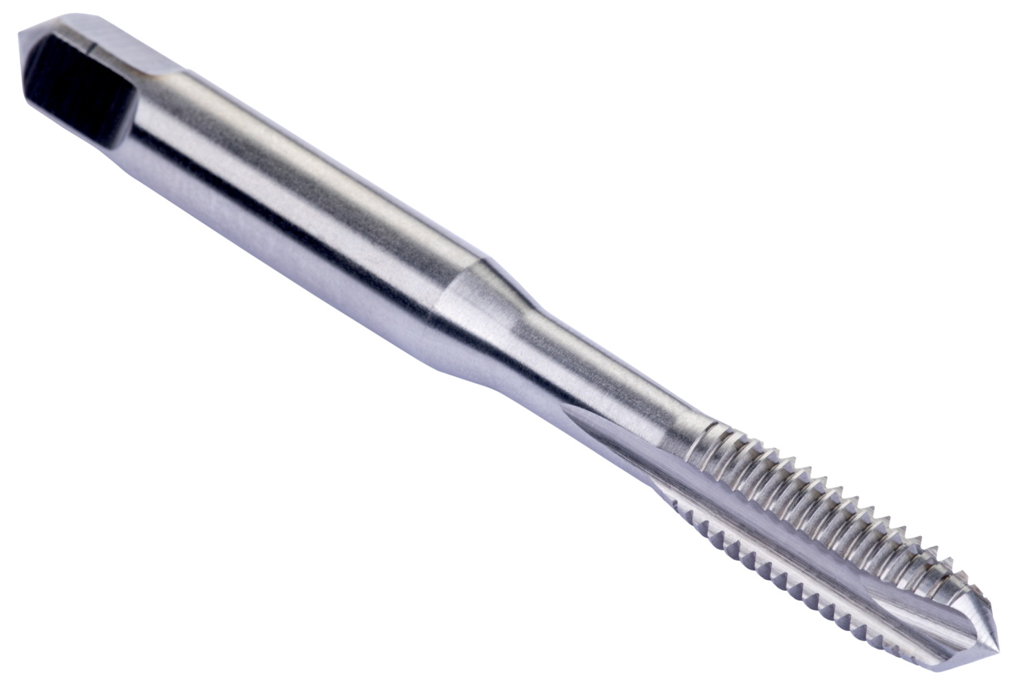 Spiral Point Power Tool Tap with chamfer form B with a 3.5-5xP plug lead, for ISO-Metric thread M4 with 0.70 mm pitch and 6H class of fit, dimensions according to ISO 529 standard with 4.0mm shank and 3.15mm square drive, HSS with bright finish for 2xD through hole threading in general purpose applications