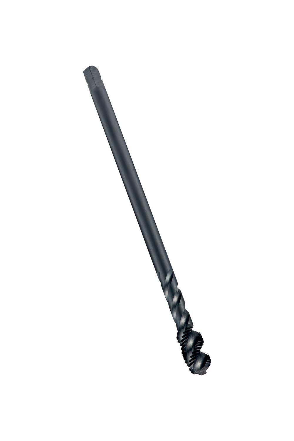 Spiral flute tap with chamfer form C with a 2-3xP plug lead, for ISO-Metric Fine thread M27 with 1.50 mm pitch and 6H class of fit, dimensions according to DIN 374 standard with 20.0mm shank and 16.0mm square drive, powder metallurgical HSS-E with steam tempered surface finish and 45° helix angle for 2.5xD blind hole threading in general purpose applications