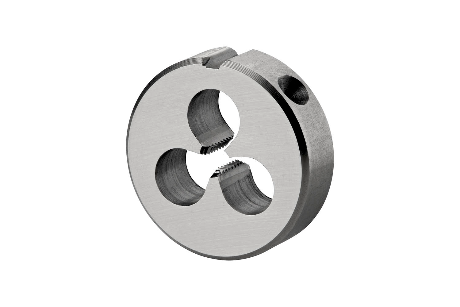 Solid round die with a gun nose, for ISO-Metric thread M2 with 0.40 mm pitch and 6g class of fit, dimensions according to ISO 2568 standard with 16mm outside diameter and 5mm thickness, cobalt based HSS-E with lapped surface finish for threading in alloy and tool steel, martensitic and austenitic stainless steel and austenitic or austempered ductile cast-iron