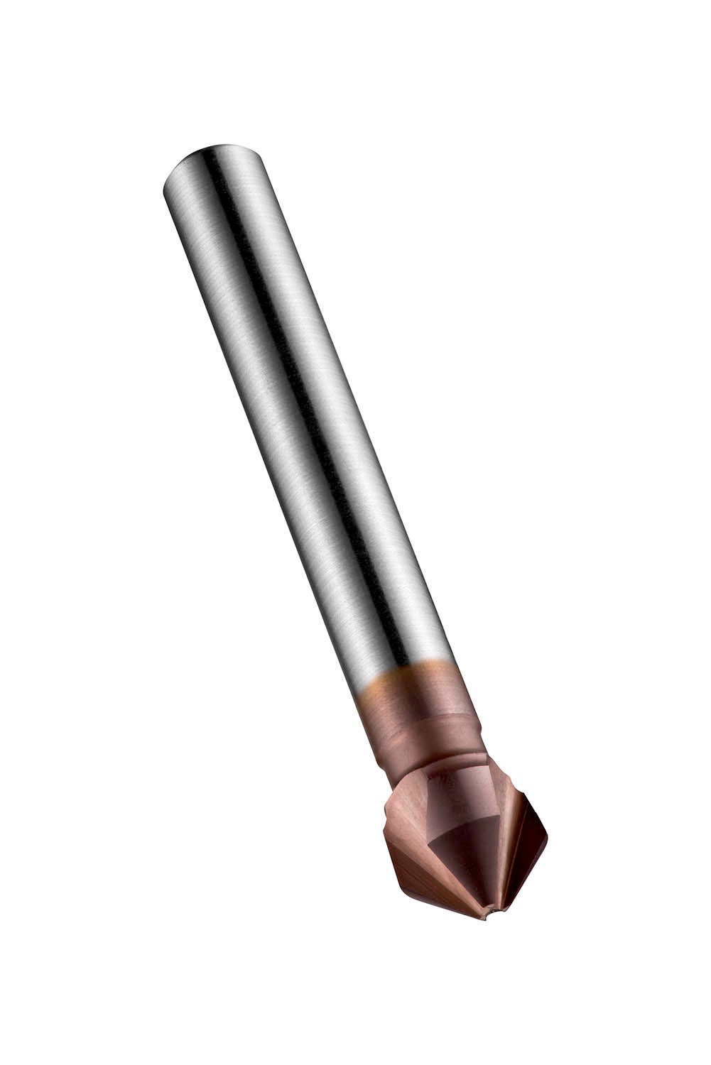 Countersink with 3-flutes, 90° chamfering angle, maximum diameter 16.50mm with an overall length of 60mm and a head length of 13.9mm and 10mm straight shank, according to DIN 335 C standard to produce a conical seat for ISO Metric countersunk-head screws with a minium hole diameter of 3.20mm, cobalt based HSS-E with standard AlTiCN coating for machining alloy and tool steel, ferritic, martensitic and austenitic stainless steel and grey, malleable, ductile and compacted graphite cast-iron
