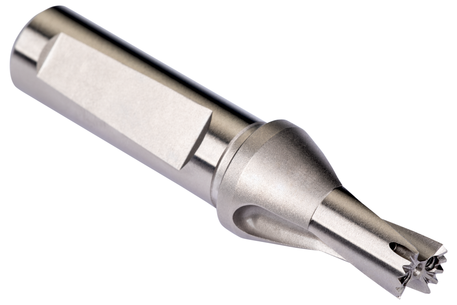 DOR Replaceable head drill body HYDRA with ISO 9766 shank with flange and flat, size 25.0mm with an overall length of 124.7mm and flute length of 49.7mm according to DORMER standard for 1.5xD drilling with HYDRA P (R950), HYDRA M (R960) or HYDRA K (R970) diameter 25 up to 25.8mm
