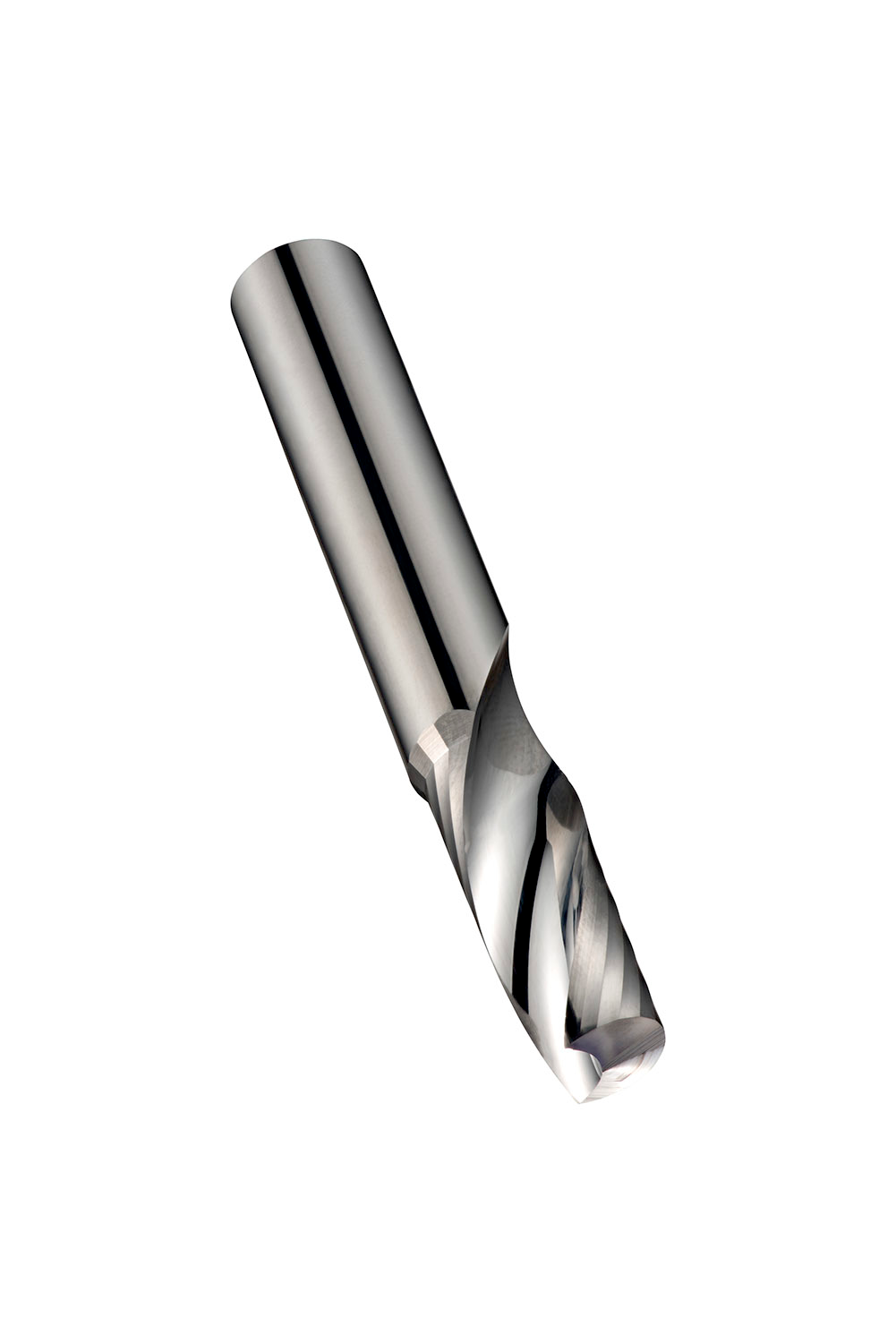 Short series end mill with 1 flute, diameter 6mm with 20mm length of cut and 60mm overall length, according to DORMER standard with a 6mm plain shank, solid carbide with polished finish, 25° helix and 20° rake angle for slot milling in non-ferrous metals