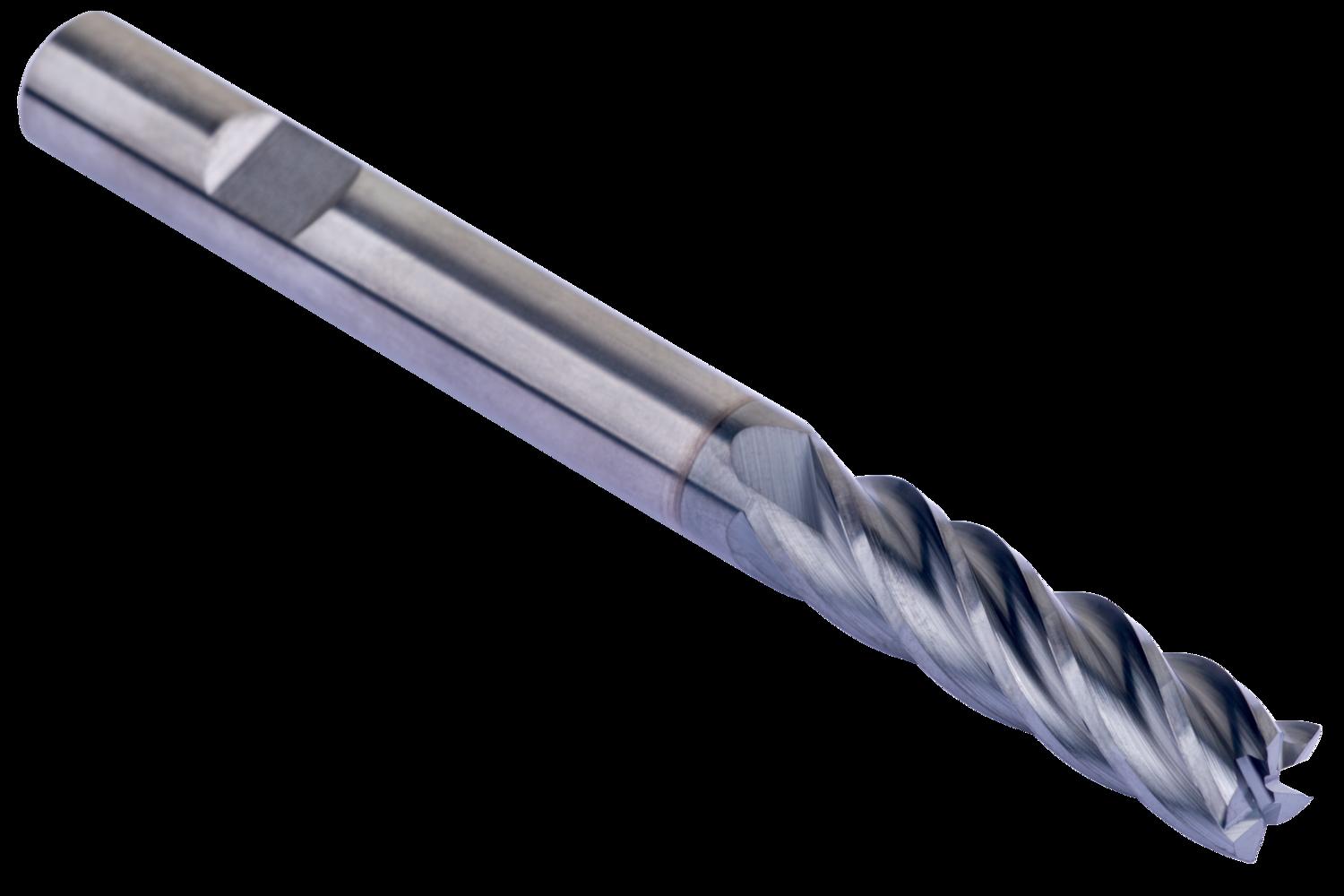 Long series Trochoidal end mill with 5 flutes, diameter 12mm with 45mm length of cut, 100mm overall length and 0.3mm corner radii, according to DORMER standard with a 12mm Weldon shank, solid carbide with AlCrN coating, unequal helix and 10° rake angle for shoulder milling, ramping, helical milling and trochoidal milling in steel and cast steel, stainless steel, cast-iron or high-temperature alloys