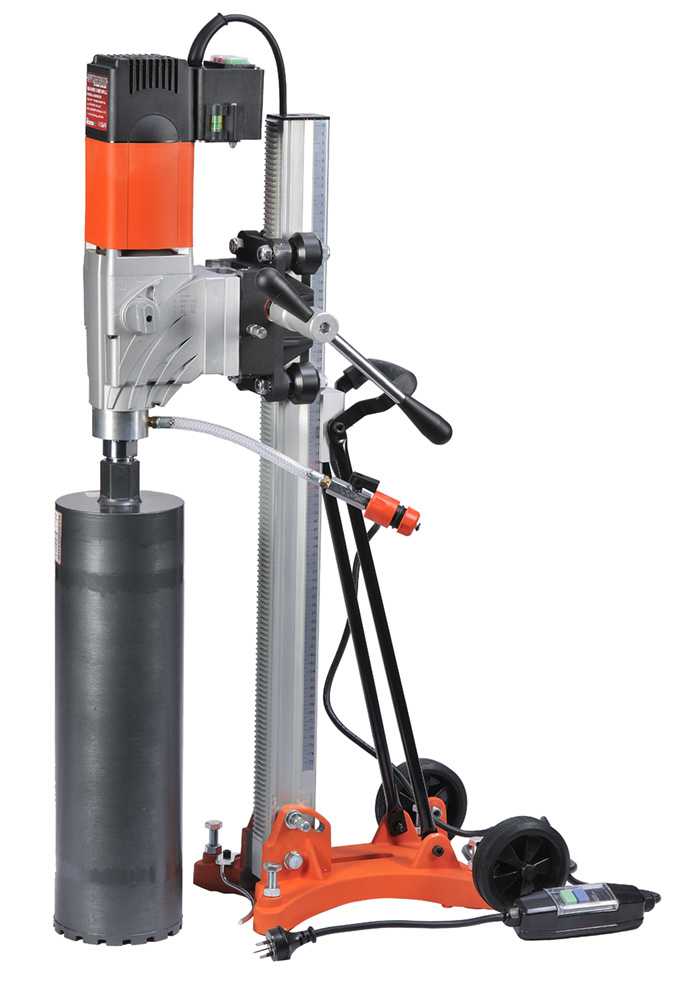 Heavy duty machine suitable for coring through rebar and mesh embedded concrete.
