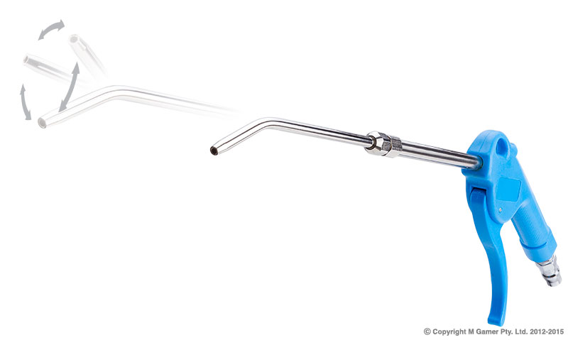 • Adjustable length and nozzle angle. The extension section can be rotated 360° and then locked into position with the locking ring. • Metal inlet for increased tool life • Moulded in hook to hang the tool Length: 270 to 390 mm Inlet: 1/4″ Operating Temperature: -5 to 60° Material: POM/Steel