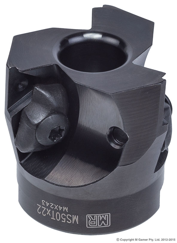 • Shell End Mill • Positive axial rake • 90 degree • Insert: TPMN1603 (sold seperately) Cutter diameter: 50mm Bore: 22mm