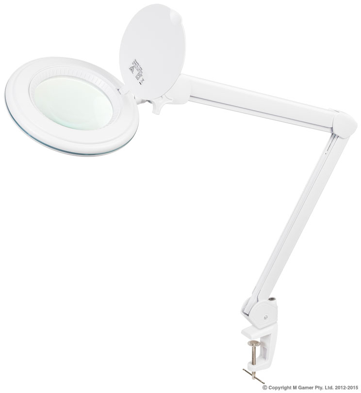 • High quality all metal frame construction. • 900 mm two piece articulated arm • Mountable to most workbenches up to 60 mm in thickness • 60 LED lamp with high & low modes Lens dia.: 120 mm Magnification: 3 Dioptre Max lens height: 900 mm Brightness: 760 Lumen High / 380 Lumens Low Colour Temperature: 6000-6500K Power supply: 240V Power consumption: 4-8W Cord length: 1.3m