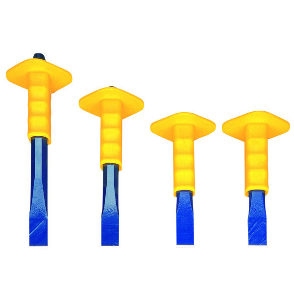 Manufactured to the highest safety standards, individually forged from high quality alloy steel. The alloy content in these makes them ideal for all types of metalworking and masonry applications and also increases wear resistance significantly. The precisely ground cutting edge is induction hardened (52 – 58 HRC) to give improved performance over longer periods of time. Hardness at the striking end is maintained to under 42 HRC, so that the head will not splinter when subject to hammer blows. The shank is powder coated and cutting edge is accurately ground. Octagonal Chisels are used for general work on cutting and chipping of metals, and shaping, facing and cutting of stonework. The extra long chisels are useful for all cutting and shaping jobs where extra length is required. As per the standard cold chisels but with strong impact proof polypropylene hand guards. These are designed to protect the user’s hands from misplaced hammer blows.