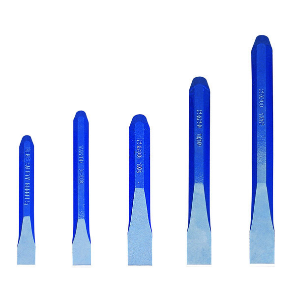 Manufactured to the highest safety standards, individually forged from high quality alloy steel. The alloy content in these makes them ideal for all types of metalworking and masonry applications and also increases wear resistance significantly. The precisely ground cutting edge is induction hardened (52 – 58 HRC) to give improved performance over longer periods of time. Hardness at the striking end is maintained to under 42 HRC, so that the head will not splinter when subject to hammer blows. The shank is powder coated and cutting edge is accurately ground. Octagonal Chisels are used for general work on cutting and chipping of metals, and shaping, facing and cutting of stonework. The extra long chisels are useful for all cutting and shaping jobs where extra length is required.