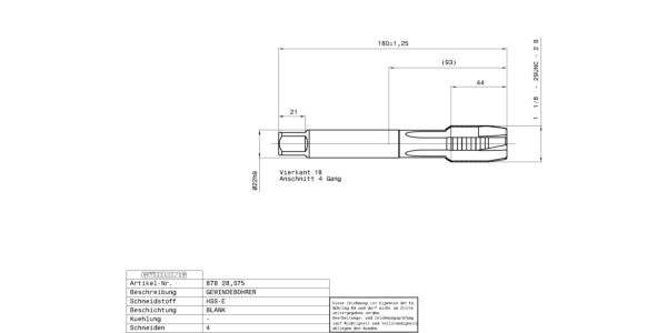 Machine taps for UNC-threads 1 1/8 – 7 / 2B / 3xD / ~DIN 376 / DIN 2184-1 / HSS-E / bright / Type: N / Form: B / through hole / Cutting direction: right-hand /