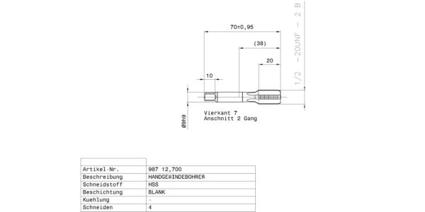 Bottoming tap Hand taps for UNF-threads 1/2 – 20 / 2B / ~DIN 2181 / DIN 2184-2 / HSS / bright / Type: N / Form: C / through-, blind hole / Cutting direction: right-hand /
