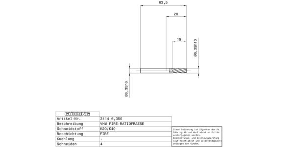 Ratio end mills standard RF 100 U / Ø 6.350 mm / h10 / Company std. / Solid carbide / FIRE / Type: N / Cutting direction: right-hand