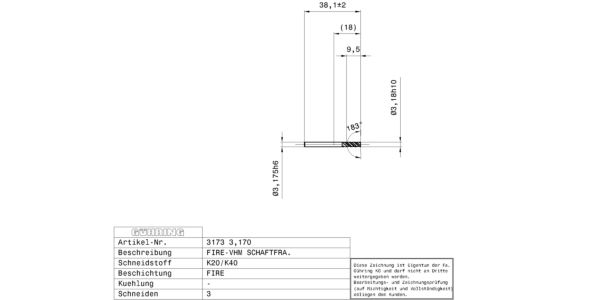 Slot drills GH 100 U (3-fluted) / Ø 3.175 mm / h10 / Company std. / Solid carbide / FIRE / Type: NH / Cutting direction: right-hand