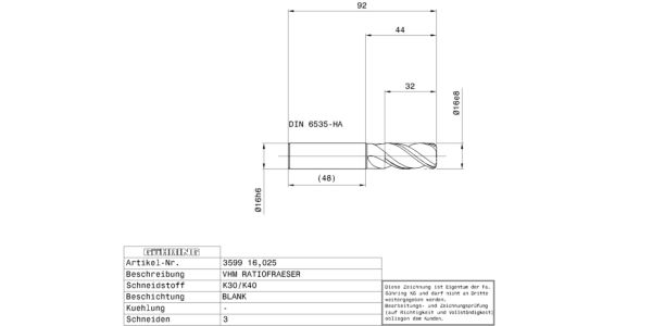 Ratio end mills Alu RF 100 AL / Ø 16.000 mm / e8 / Company std. / Solid carbide / bright / Type: RF 100 AL / Form: A / Cutting direction: right-hand /