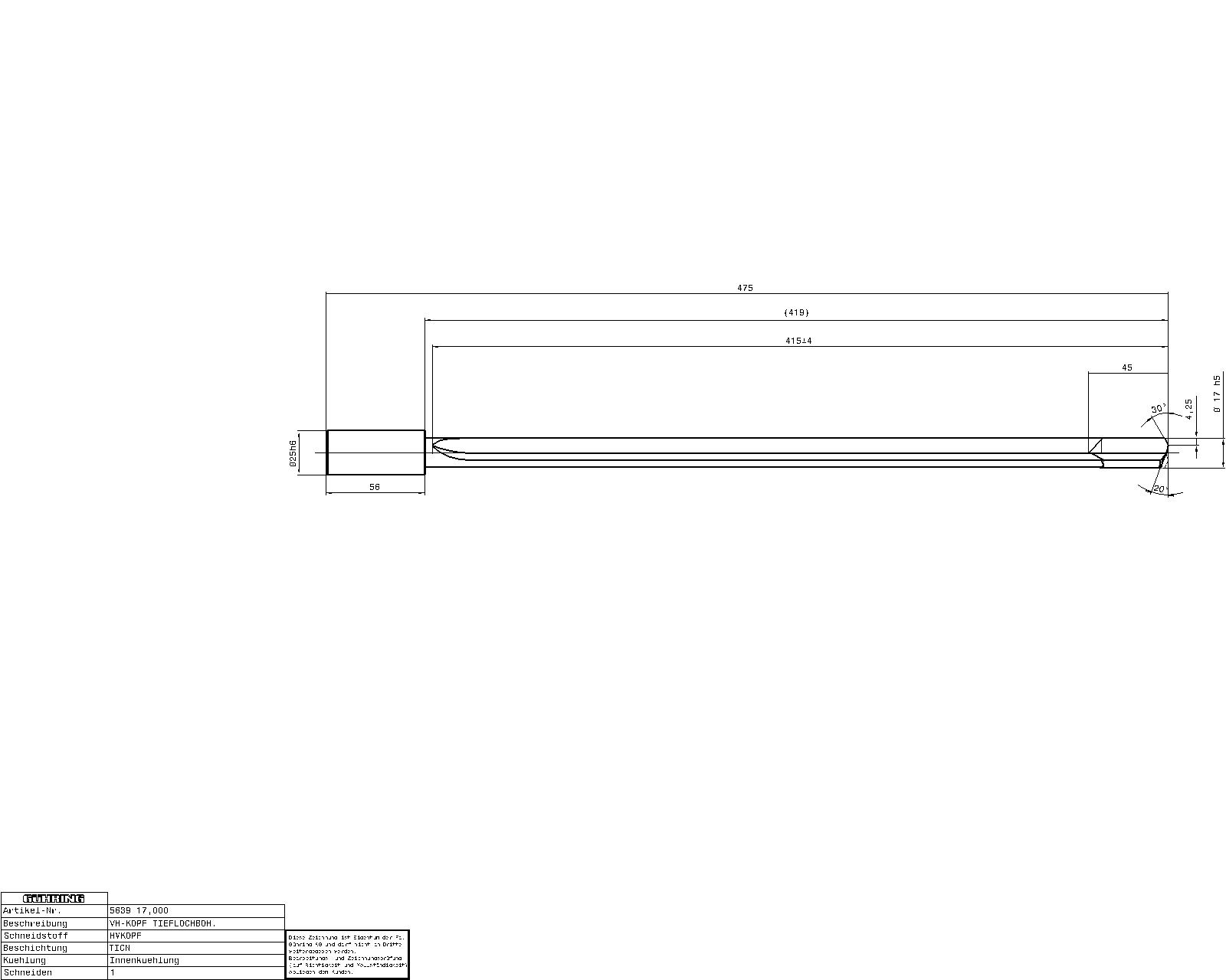 Home » Shop » CUTTING TOOLS (HSS & Carbide) » Guhring 20 x D Carbide Gun drills Carbide TiCN Coated