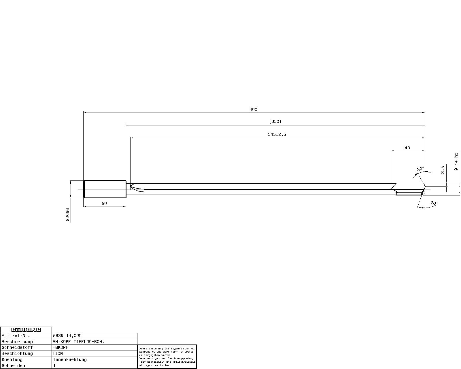 Home » Shop » CUTTING TOOLS (HSS & Carbide) » Guhring 20 x D Carbide Gun drills Carbide TiCN Coated