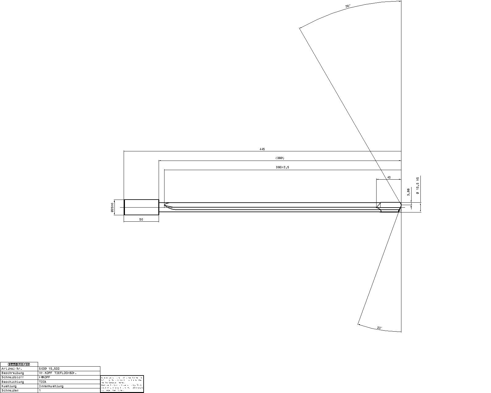 Single-fluted gun drills EB 80 / Ø 15.500 mm / 20xD / Company std. / Carbide / TiCN / Type: EB 80 / Cutting direction: right-hand /