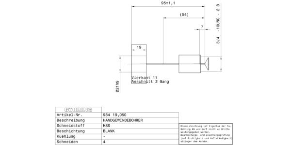 Bottoming tap Hand taps for UNC-threads 3/4 – 10 / 2B / ~DIN 352 / DIN 2184-2 / HSS / bright / Type: N / Form: C / through-, blind hole / Cutting direction: right-hand /