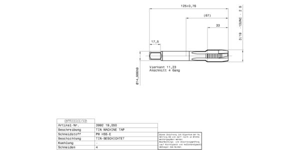 Machine taps for UNC-threads 3/4 – 10 / 2B / Company std. / DIN/ANSI / HSS-E-PM / TiN / Type: H / Form: B / through hole / Cutting direction: right-hand