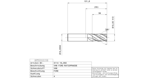 Ratio end mills standard RF 100 U / Ø 19.050 mm / h10 / Company std. / Solid carbide / FIRE / Type: N / Cutting direction: right-hand