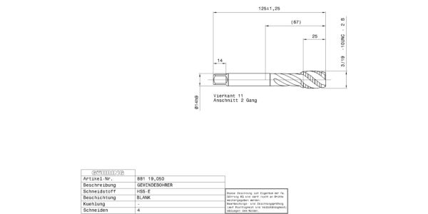 Machine taps for UNC-threads 3/4 – 10 / 2B / 3xD / ~DIN 376 / DIN 2184-1 / HSS-E / bright / Type: N R40 / Form: C / blind hole / Cutting direction: right-hand /